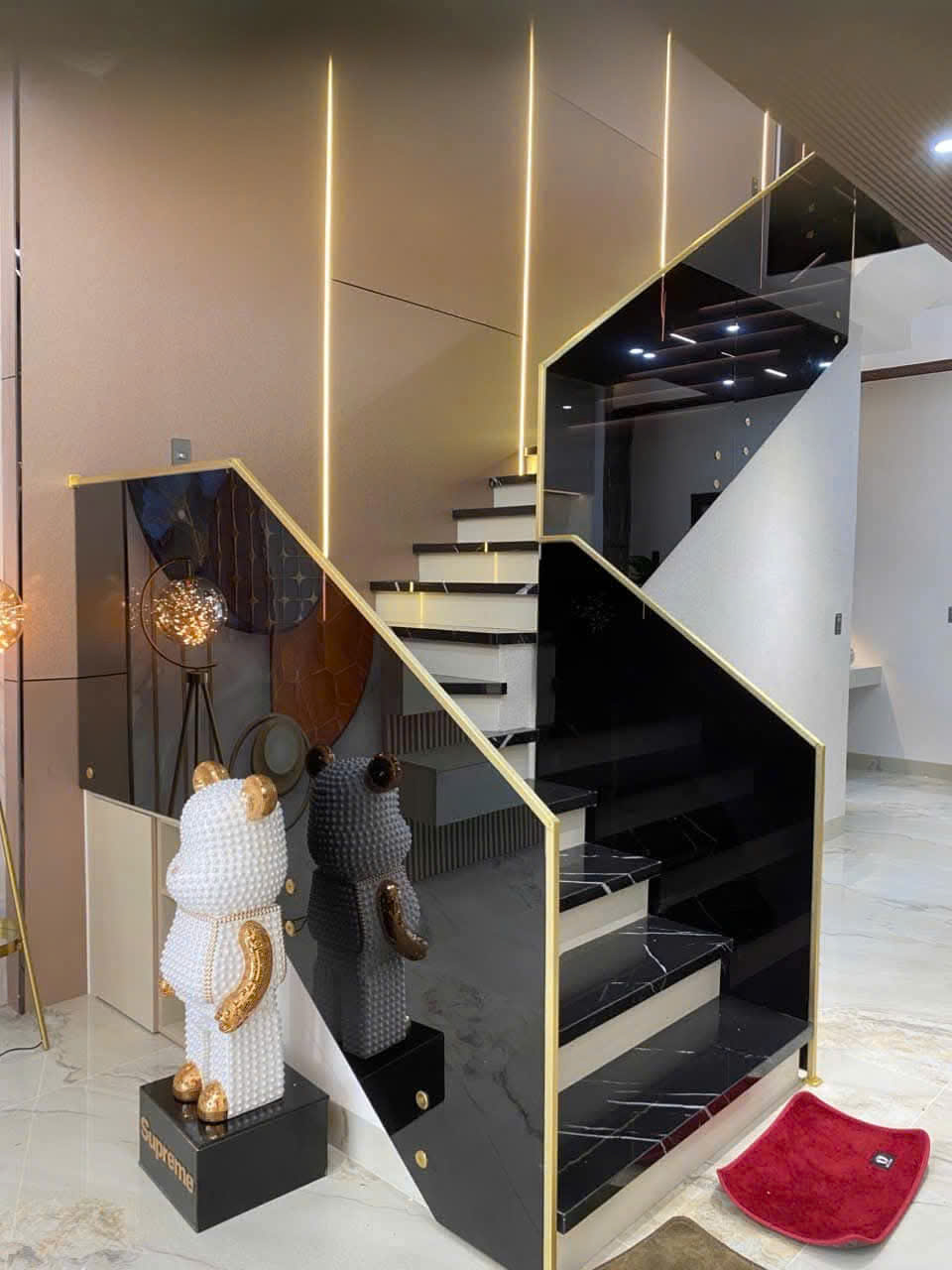 • Cầu thang kính là sự kết hợp hoàn hảo giữa gỗ và kính cường lực, sản phẩm phổ biến trong thiết kế cầu thang hiện nay